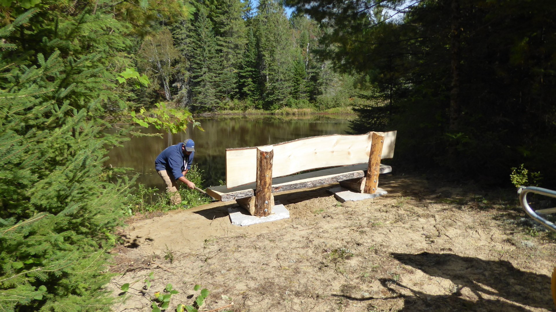 A group of dedicated volunteers led by Board members Penny Thomas and Brian Simpson got this done. Special thanks to Craig and Doris MacDonald for their vision and energy in creating the trails and designing the trail map, to Mark McLean, Jack Stewart, Rob Stimpson and Simon Miles for their help on the welcome sign, Phil Pavey for his expert tree trimming, Rebecca Krawczyk for managing our invasive Phragmites, and Mark Pimlott for protecting the new benches with linseed oil and clearing bush around our Hwy 35 signs. View our volunteer photo gallery.